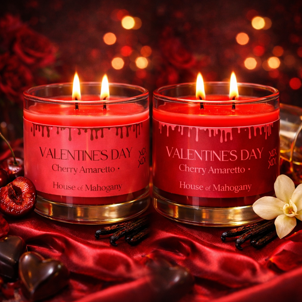 Our Cherry Amaretto Valentine’s Candle is a true one-of-one creation, hand-poured in a rich cherry-red wax and finished with our signature pink Valentine’s label. Designed to seduce the senses, this limited edition piece blends the juicy sweetness of ripe cherries with the warm, almond-kissed depth of amaretto, softened by creamy vanilla undertones.